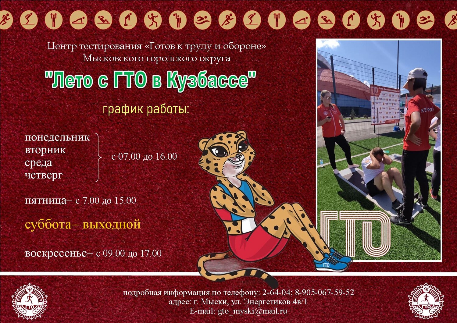 В центре тестирования «Готов к труду и обороне» Мысковского городского округа изменился график работы. Для вашего удобства мы работаем с 7 утра.