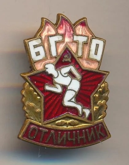 В этот период для детей и молодежи СССР также было введено почетное звание «отличник БГТО» и соответствующий значок, отличающийся добавлением в нижней части описанного стандартного знака ленты с надписью «отличник» на красном эмалевом поле. Такие экземпляры считаются самыми редкими.