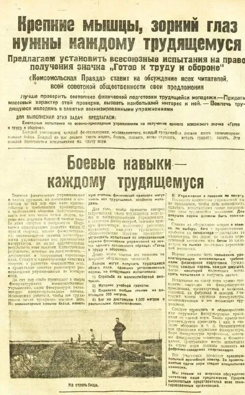 Речь шла о необходимости введения единого критерия для оценки физической подготовленности молодежи. Предлагалось установить специальные нормы и требования, а тех, кто их выполнял — награждать значком.