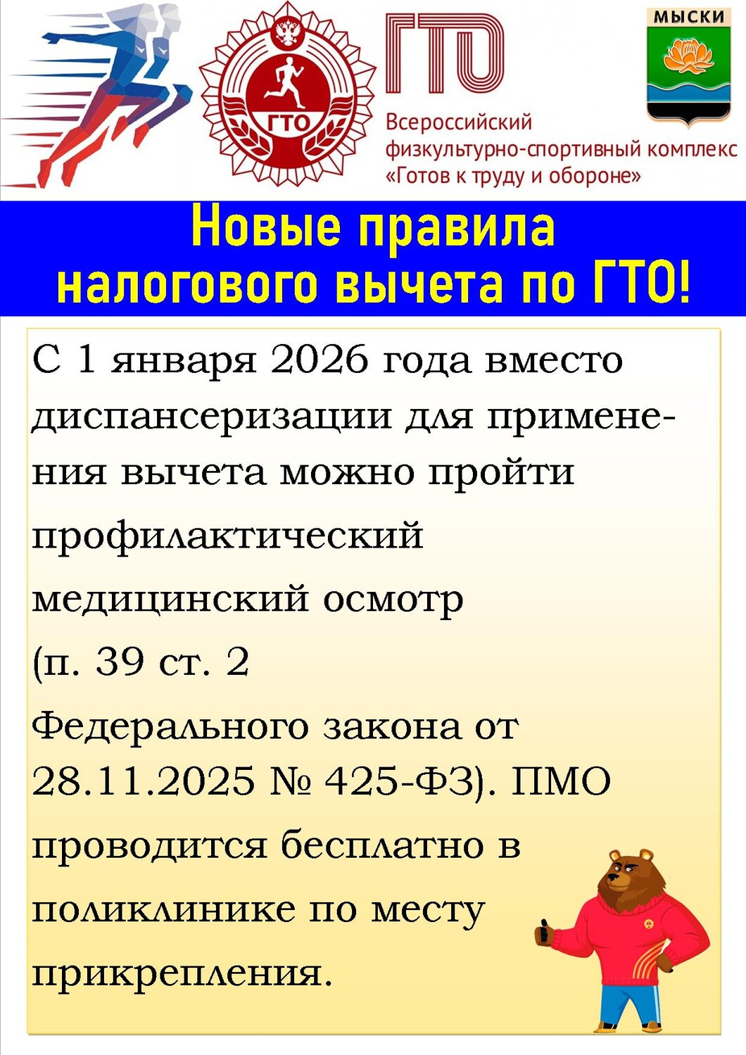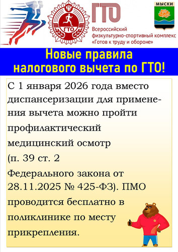 С 1 января 2026 года вместо диспансеризации для применения вычета можно пройти профилактический медицинский осмотр (п. 39 ст. 2 Федерального закона от 28.11.2025 № 425-ФЗ). ПМО проводится бесплатно в поликлинике по месту прикрепления.